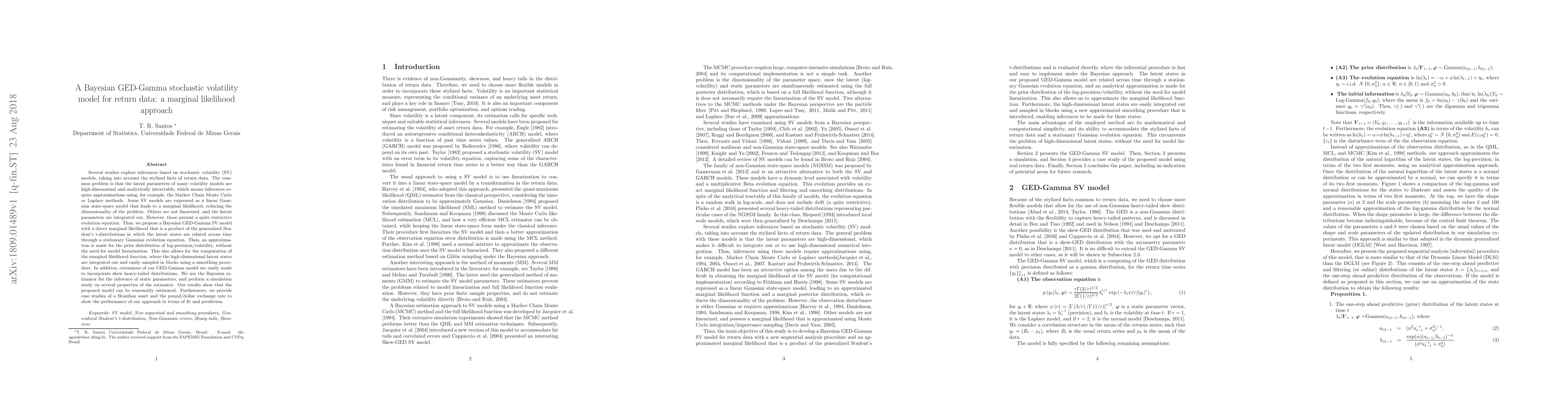 This paper proposes a Bayesian Generalized Extreme Value (GED)-Gamma stochastic volatility (SV) model with a direct marginal likelihood approach to handle high-dimensional latent parameters in return data. The model integrates out latent states through a stationary Gaussian evolution equation, allowing for the computation of the marginal likelihood without linearization, and demonstrates reasonable estimation through simulation studies and case studies on Brazilian assets and exchange rates.