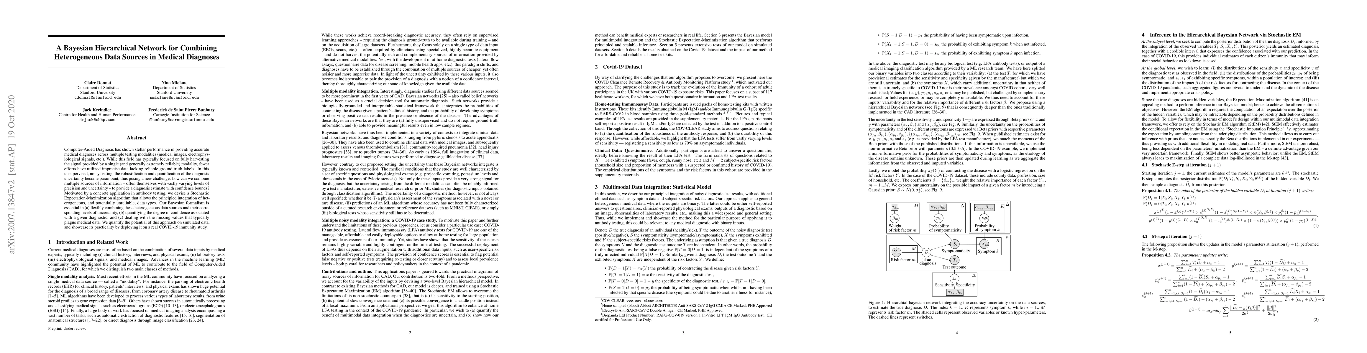 Researchers develop a Bayesian hierarchical network to combine heterogeneous medical data sources with varying levels of precision and uncertainty for accurate diagnoses. Their approach provides confidence bounds and demonstrates practicality on real COVID-19 immunity study data.