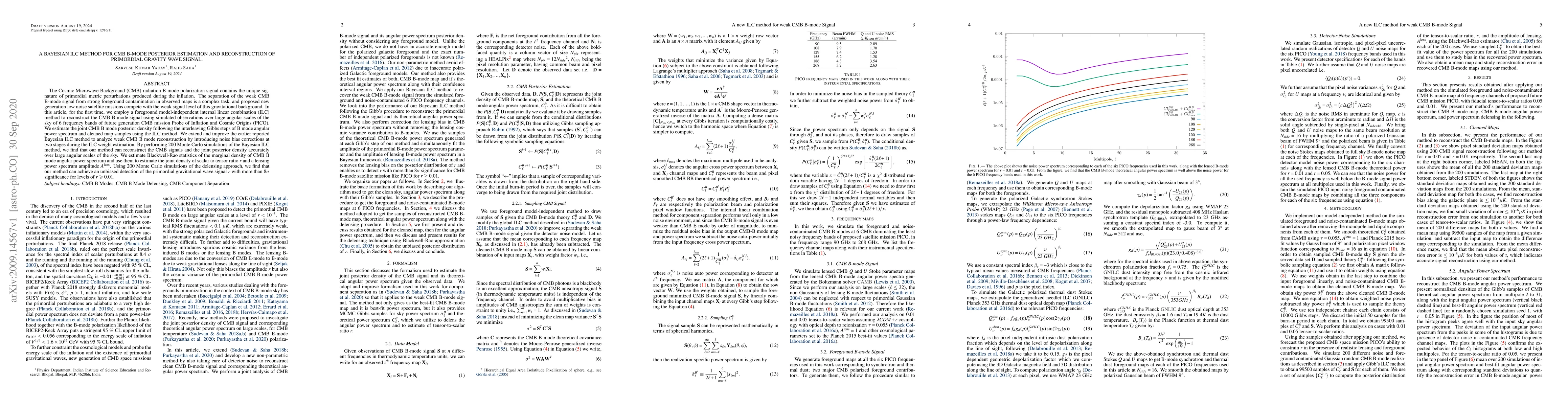 This paper introduces a Bayesian internal linear combination (ILC) method to reconstruct the CMB B-mode signal and estimate the primordial gravitational wave signal from the Cosmic Microwave Background (CMB) radiation. The method, improved with noise bias corrections, accurately reconstructs the CMB signal and achieves an unbiased detection of the gravitational wave signal with over 8σ significance for $r \geqslant 0.01$.