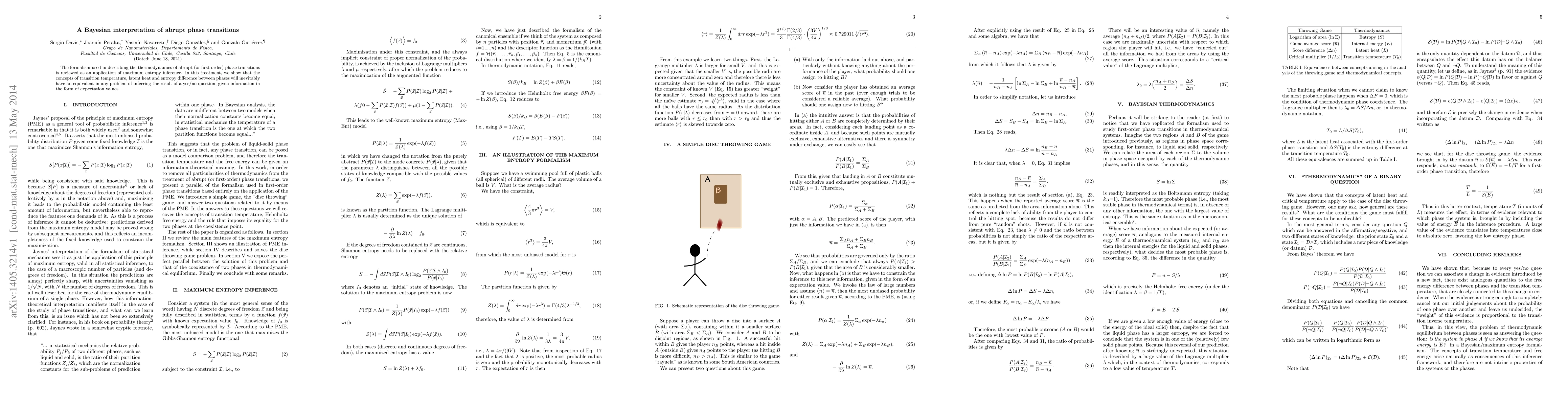This paper reviews the thermodynamics of abrupt phase transitions through a Bayesian lens, demonstrating that concepts like transition temperature and latent heat correspond to inferential outcomes in yes/no questions, using maximum entropy principles.