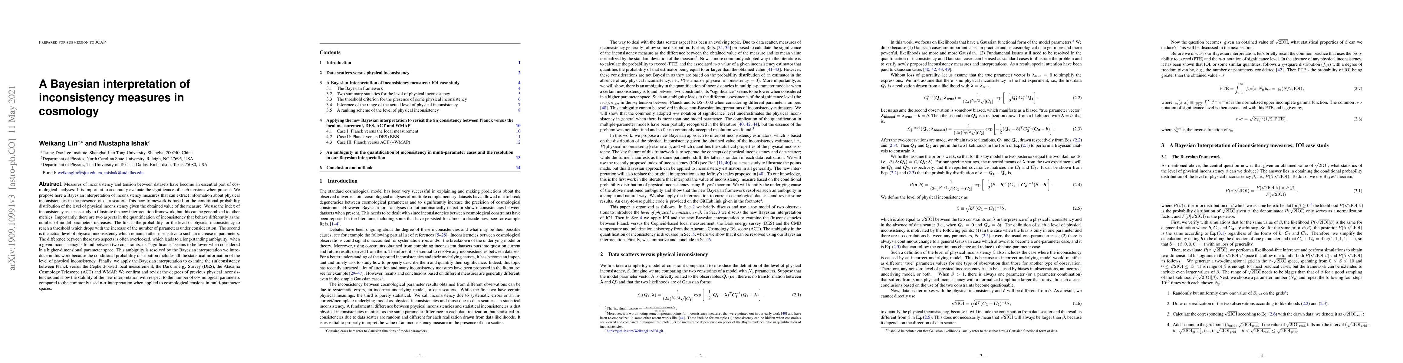 This paper proposes a Bayesian framework to interpret inconsistency measures in cosmology, addressing the ambiguity in quantifying physical inconsistencies as model parameters increase. The Bayesian approach resolves the underestimation of inconsistencies by incorporating the conditional probability distribution, providing a more accurate assessment compared to traditional significance levels.