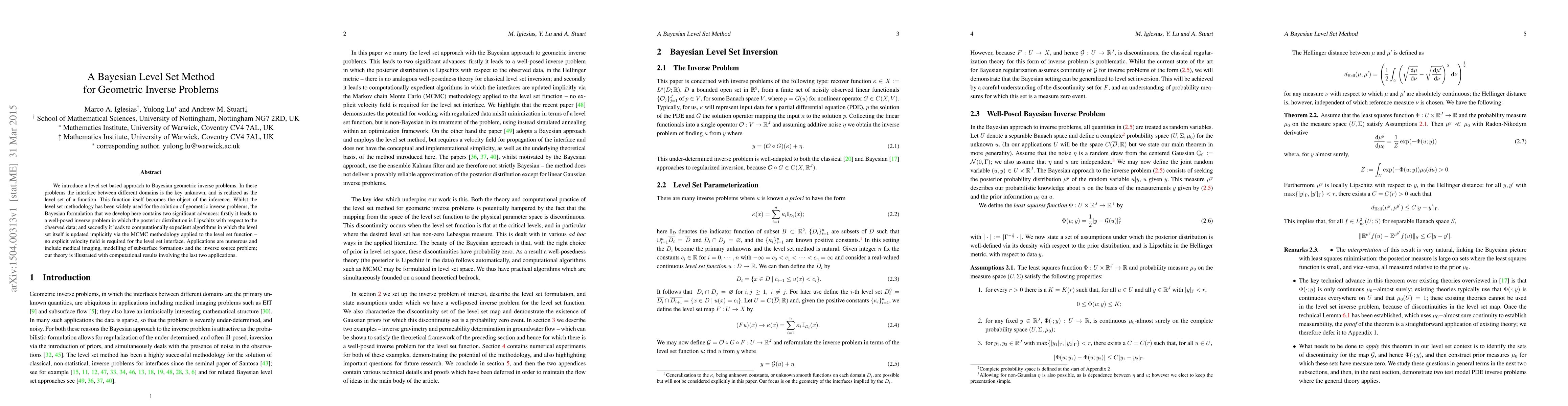 This paper introduces a Bayesian level set method for solving geometric inverse problems, ensuring a well-posed inverse problem with a Lipschitz posterior distribution and enabling efficient computation via implicit MCMC updates, with applications in medical imaging and subsurface formation modeling.