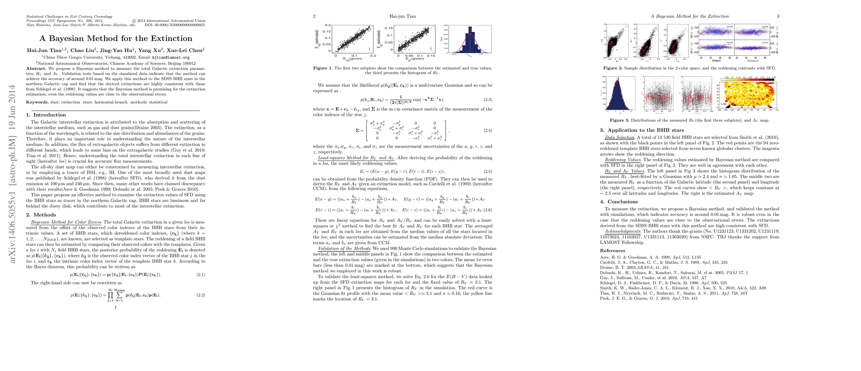 Researchers develop a Bayesian method to accurately measure Galactic extinction parameters R_V and A_V, achieving accuracy of 0.01 mag in validation tests.