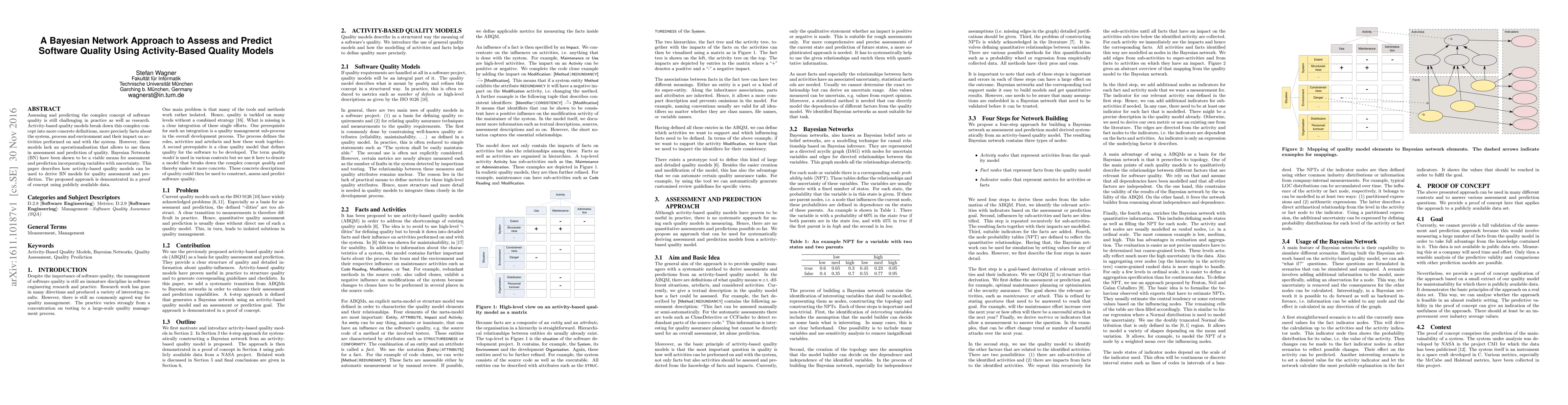 This paper proposes a Bayesian Network approach to assess and predict software quality using activity-based quality models, which break down the concept into concrete definitions. The method demonstrates how these models can be operationalized for quality assessment and prediction, validated through a proof of concept with publicly available data.