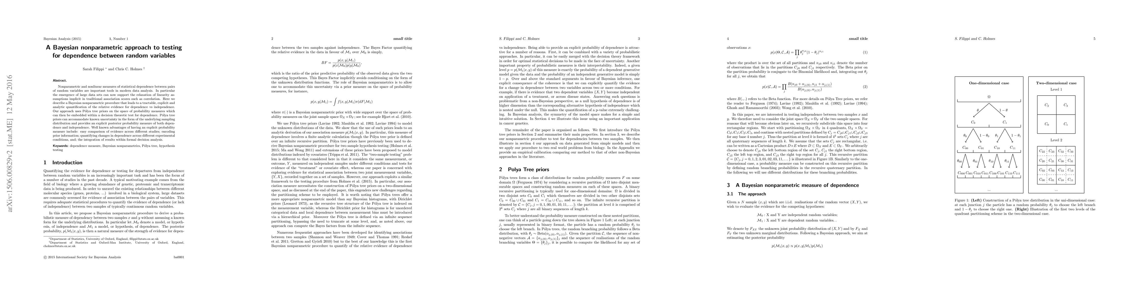 This paper proposes a Bayesian nonparametric method using Polya tree priors to quantify statistical dependence between random variables, offering a flexible alternative to traditional linear measures. The approach provides an explicit posterior probability measure for both dependence and independence, facilitating comparisons across studies and integrating results within formal decision analysis.