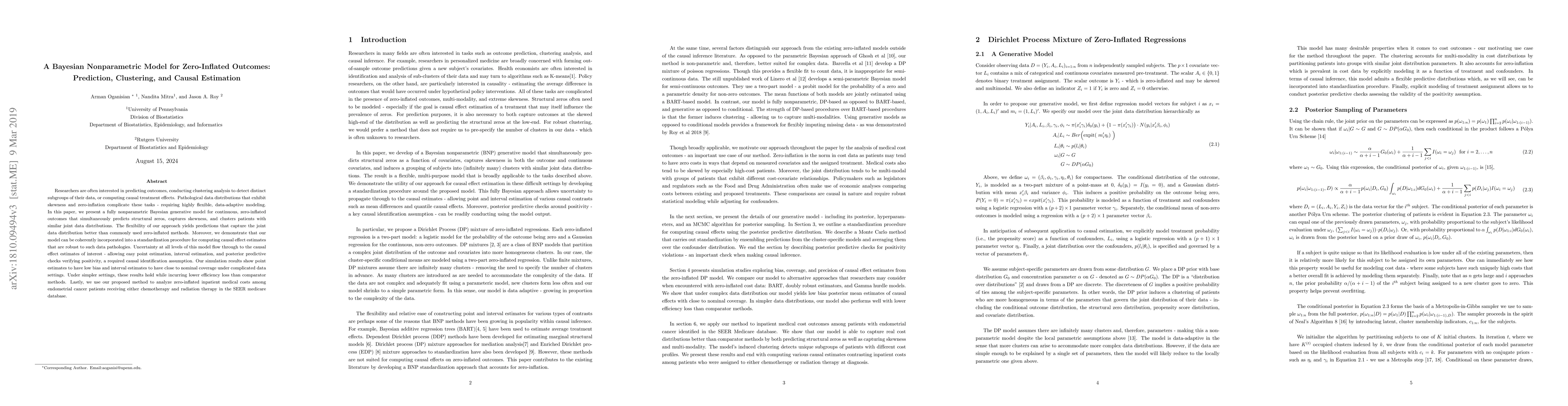 This paper introduces a flexible Bayesian nonparametric model for continuous, zero-inflated outcomes, enabling accurate prediction, clustering, and robust causal estimation. The model effectively handles skewness and structural zeros, outperforming traditional zero-inflated methods and providing reliable causal effect estimates.
