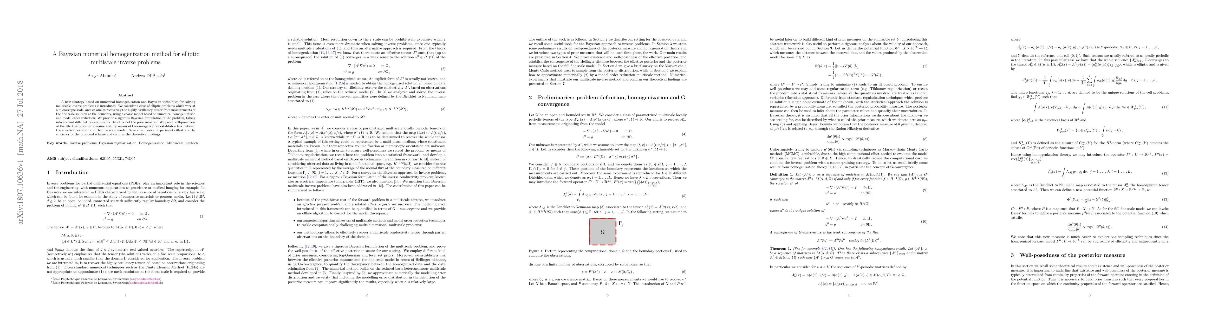 This paper introduces a Bayesian numerical homogenization method for solving multiscale inverse problems of elliptic equations. It combines numerical homogenization with Bayesian techniques to recover oscillatory tensors from boundary measurements, demonstrating well-posedness and linking the effective posterior to the fine scale model through G-convergence.