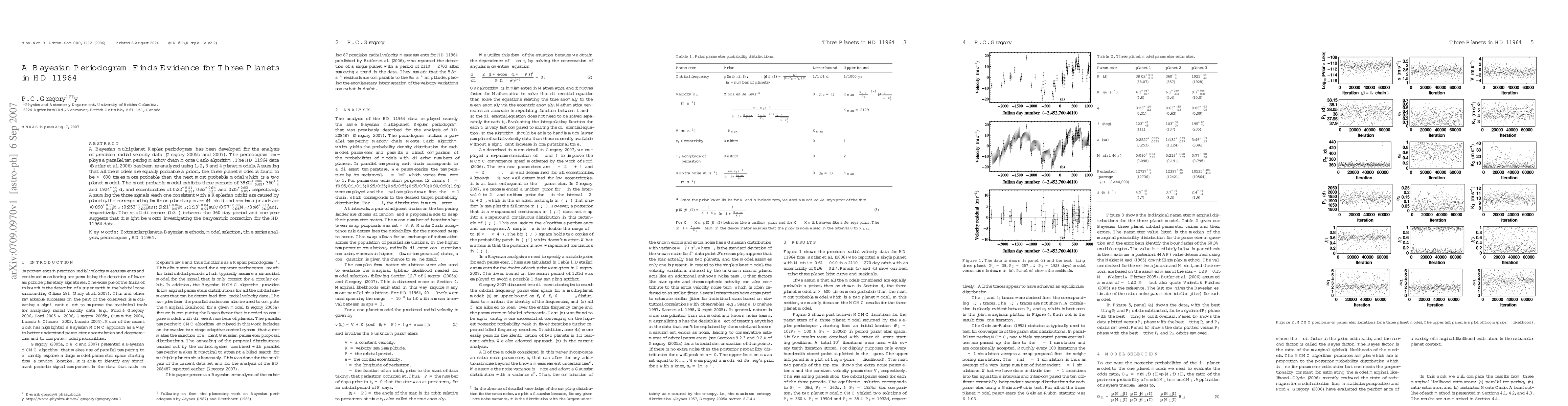 A Bayesian analysis of radial velocity data for HD 11964 suggests three planets with masses between 0.07 and 3.46 times that of Jupiter, orbiting at distances of up to 4.2 astronomical units from the star.