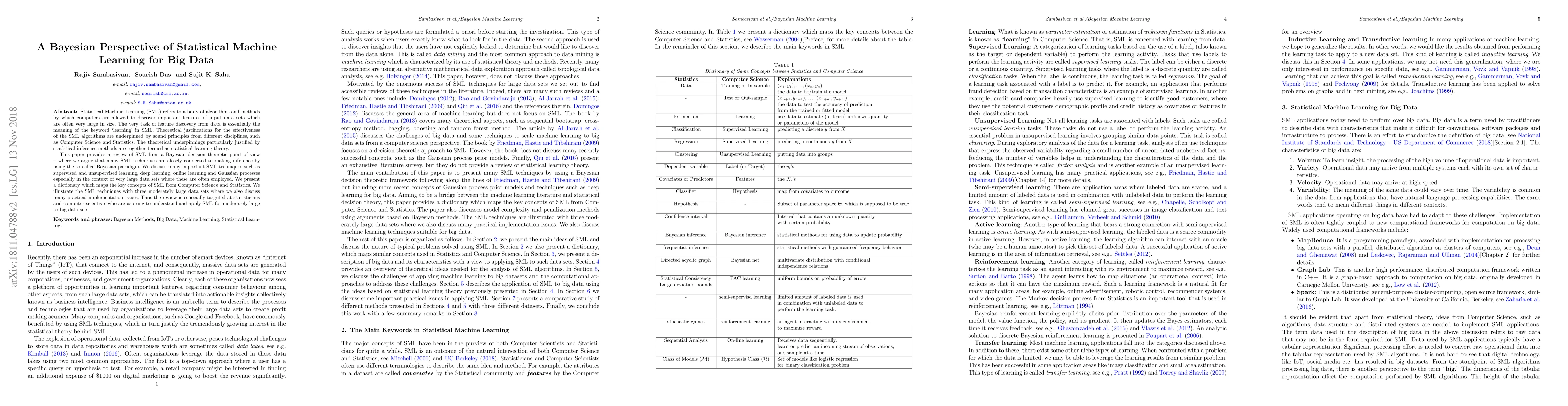 This paper reviews Statistical Machine Learning (SML) from a Bayesian perspective, highlighting connections between SML techniques and Bayesian inference. It discusses various SML methods and their applications to large datasets, aiming to bridge computer science and statistical understanding for practitioners.
