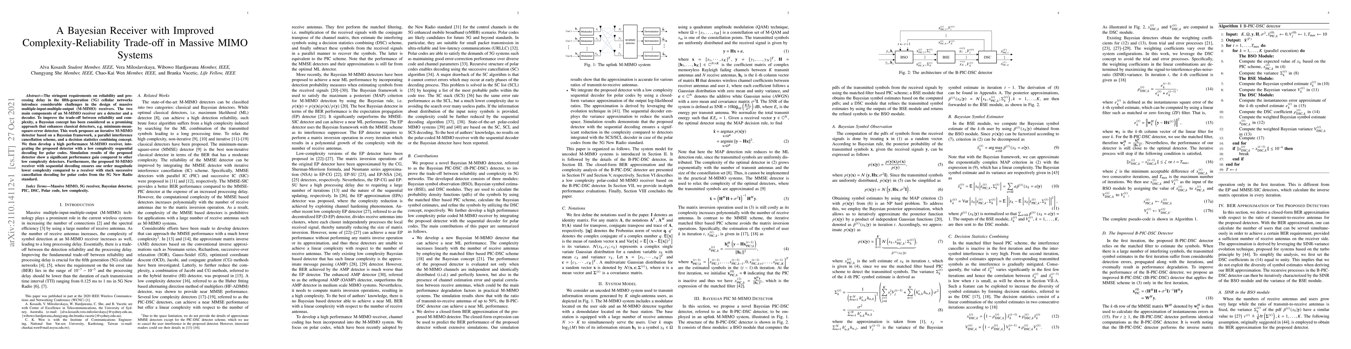 This paper proposes an iterative M-MIMO detector within a Bayesian framework to improve the complexity-reliability trade-off in 5G networks, achieving significant performance gains and a substantial reduction in complexity compared to existing low-complexity detectors.