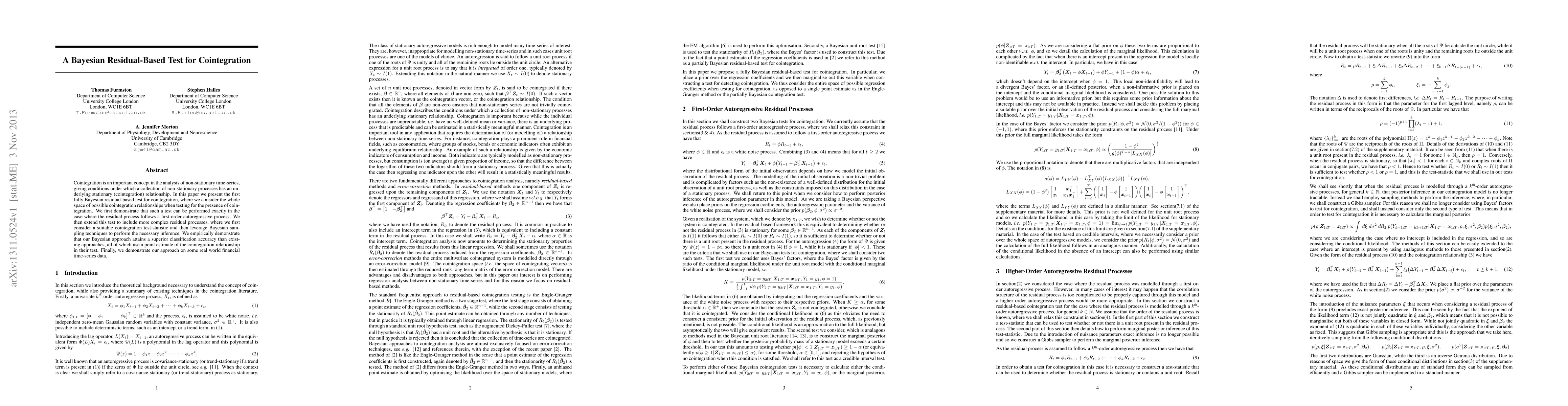 This paper introduces a novel Bayesian residual-based test for cointegration in non-stationary time-series, demonstrating superior classification accuracy through Bayesian sampling techniques compared to traditional methods. The approach is shown to be effective for both simple and complex residual processes, and is validated with real-world financial data.