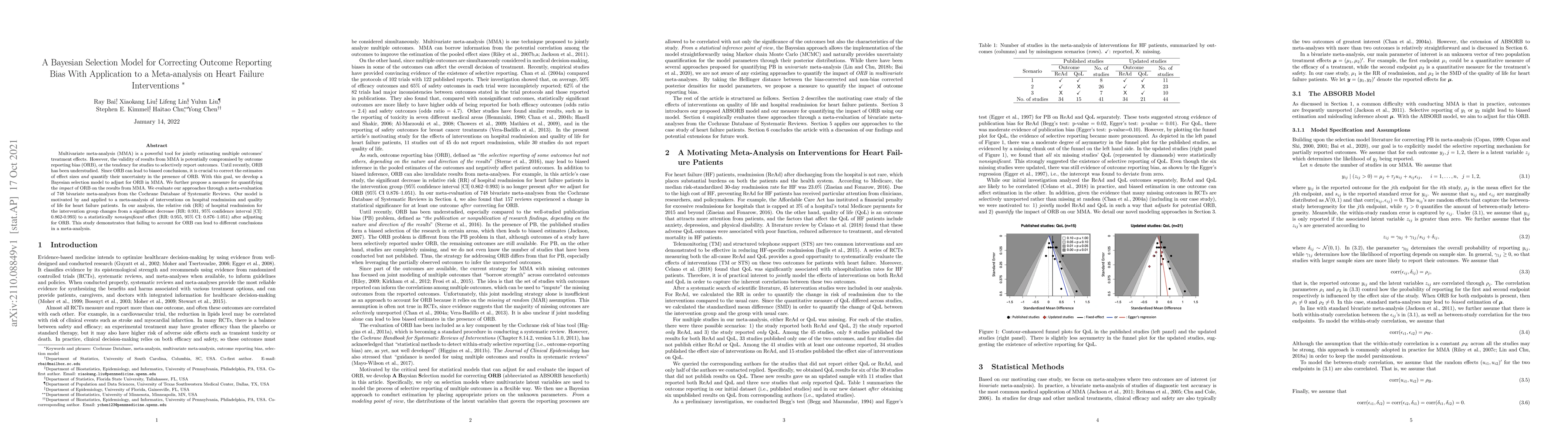 A Bayesian selection model is used to correct outcome reporting bias in meta-analysis, finding that failing to account for ORB can lead to different conclusions, as demonstrated in a study on heart failure interventions.
