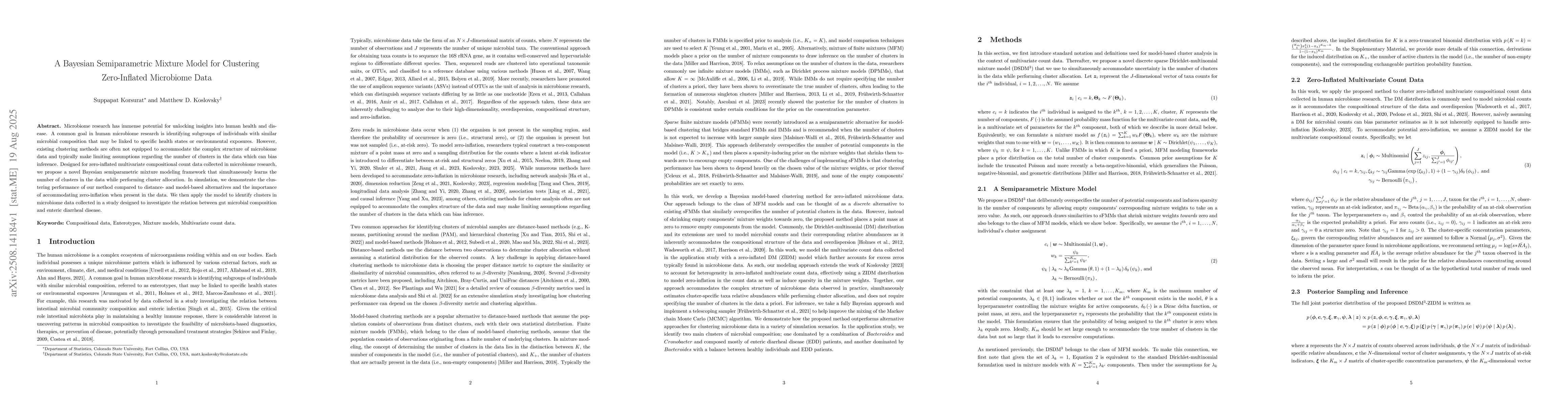 Microbiome research has immense potential for unlocking insights into human health and disease. A common goal in human microbiome research is identifying subgroups of individuals with similar microbial composition that may be linked to specific health states or environmental exposures. However, existing clustering methods are often not equipped to accommodate the complex structure of microbiome data and typically make limiting assumptions regarding the number of clusters in the data which can bias inference. Designed for zero-inflated multivariate compositional count data collected in microbiome research, we propose a novel Bayesian semiparametric mixture modeling framework that simultaneously learns the number of clusters in the data while performing cluster allocation. In simulation, we demonstrate the clustering performance of our method compared to distance- and model-based alternatives and the importance of accommodating zero-inflation when present in the data. We then apply the model to identify clusters in microbiome data collected in a study designed to investigate the relation between gut microbial composition and enteric diarrheal disease.