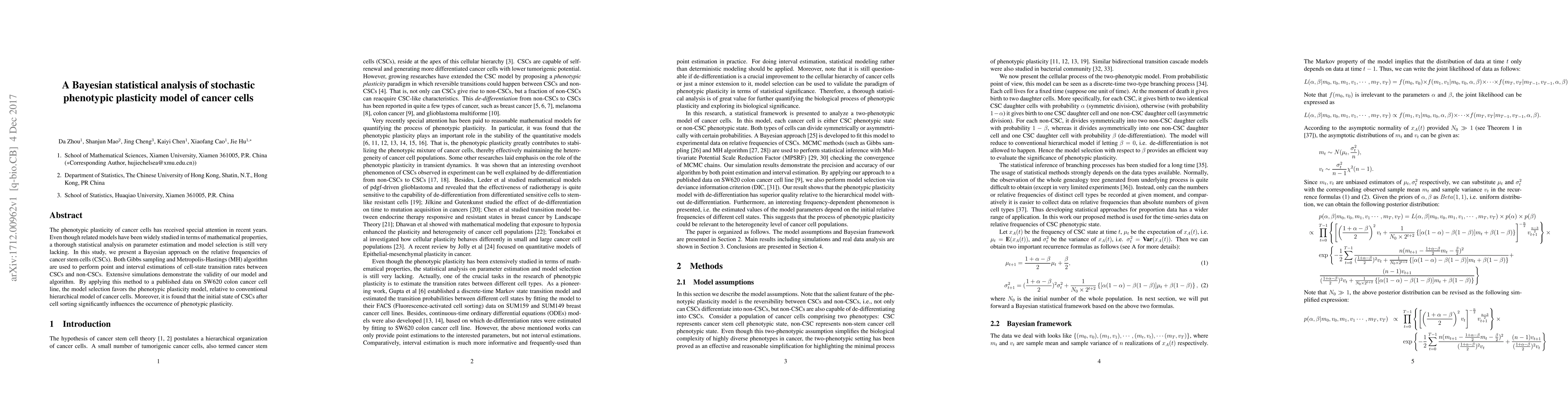 This paper employs a Bayesian statistical analysis to estimate parameters and select models for a stochastic phenotypic plasticity model of cancer cells. Using Gibbs sampling and the Metropolis-Hastings algorithm, it demonstrates the model's validity and shows that the initial state of cancer stem cells significantly affects phenotypic plasticity.