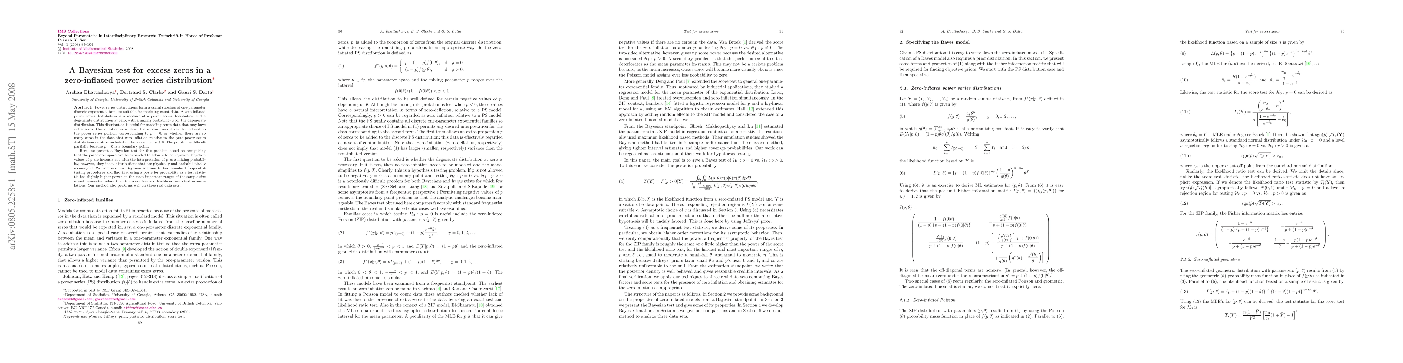 Power series distributions form a useful subclass of one-parameter discrete exponential families suitable for modeling count data. A zero-inflated power series distribution is a mixture of a power series distribution and a degenerate distribution at zero, with a mixing probability $p$ for the degenerate distribution. This distribution is useful for modeling count data that may have extra zeros. One question is whether the mixture model can be reduced to the power series portion, corresponding to $p=0$, or whether there are so many zeros in the data that zero inflation relative to the pure power series distribution must be included in the model i.e., $p\geq0$. The problem is difficult partially because $p=0$ is a boundary point. Here, we present a Bayesian test for this problem based on recognizing that the parameter space can be expanded to allow $p$ to be negative. Negative values of $p$ are inconsistent with the interpretation of $p$ as a mixing probability, however, they index distributions that are physically and probabilistically meaningful. We compare our Bayesian solution to two standard frequentist testing procedures and find that using a posterior probability as a test statistic has slightly higher power on the most important ranges of the sample size $n$ and parameter values than the score test and likelihood ratio test in simulations. Our method also performs well on three real data sets.
