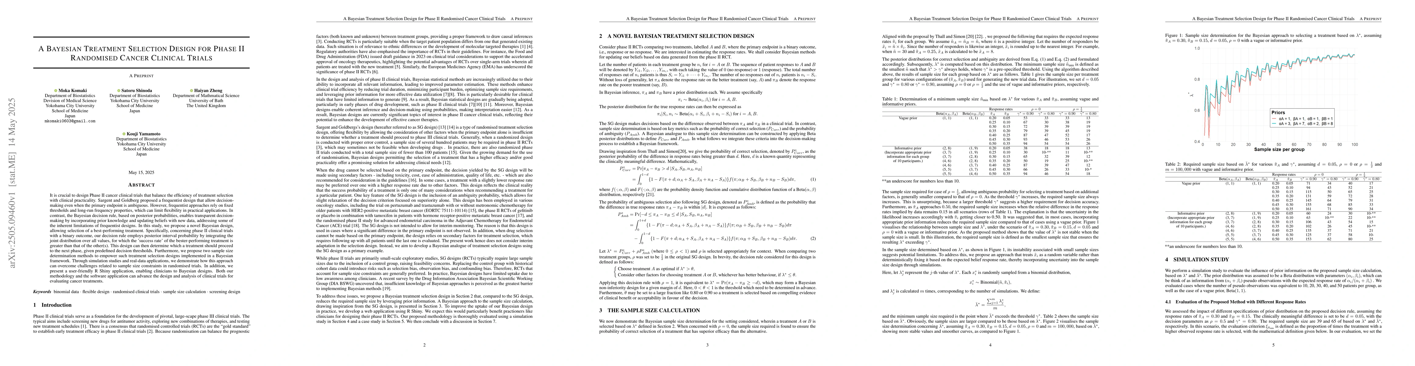 The research proposes a novel Bayesian design for Phase II randomised cancer clinical trials, utilizing posterior interval probability to select the best-performing treatment and providing two sample size determination methods.