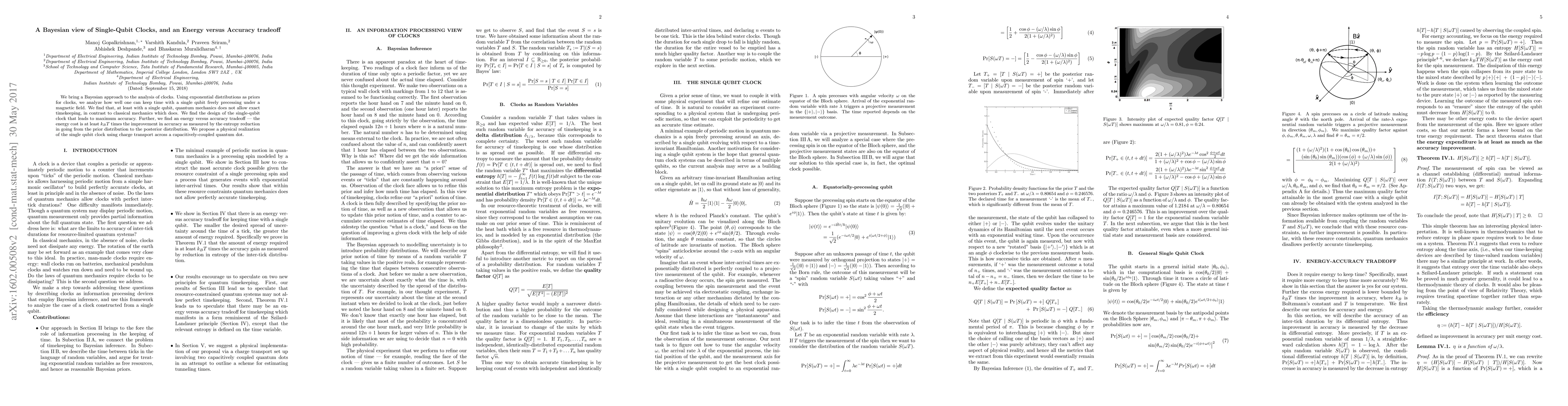 This paper employs a Bayesian framework to analyze single-qubit clocks, revealing that quantum mechanics does not permit exact timekeeping unlike classical mechanics. It identifies the optimal design for maximum qubit clock accuracy and uncovers an energy versus accuracy tradeoff, proposing a charge transport-based quantum dot for practical implementation.