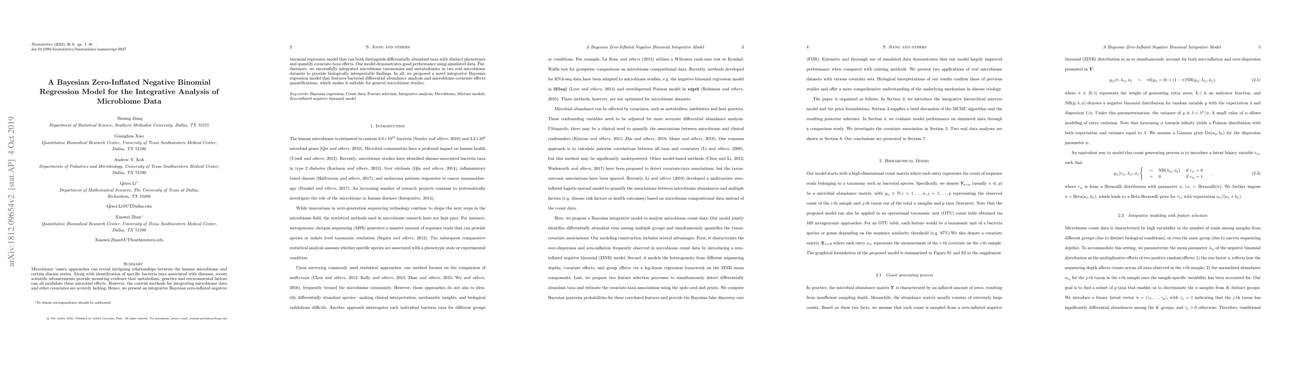 The research presents a Bayesian zero-inflated negative binomial regression model for integrative analysis of microbiome data, combining microbiome taxonomies and metabolomics in a single statistical framework.