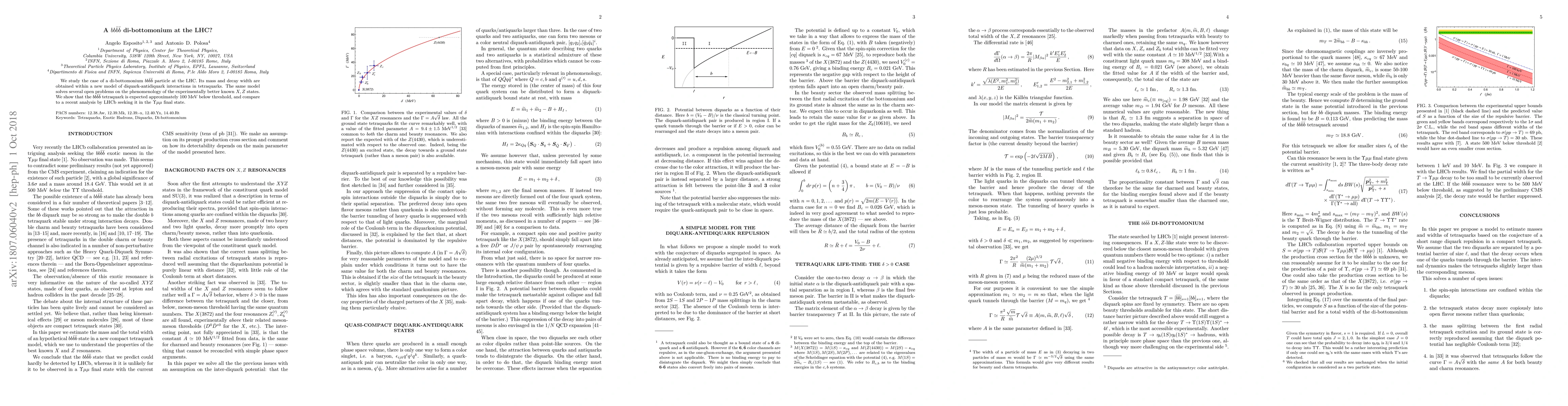 We study the case of a di-bottomonium $bb\bar b\bar b$ particle at the LHC. Its mass and decay width are obtained within a new model of diquark-antidiquark interactions in tetraquarks. The same model solves several open problems on the phenomenology of the experimentally better known $X,Z$ states. We show that the $bb\bar b\bar b$ tetraquark is expected approximately 100 MeV below threshold, and compare to a recent analysis by LHCb seeking it in the $\Upsilon\mu\mu$ final state.