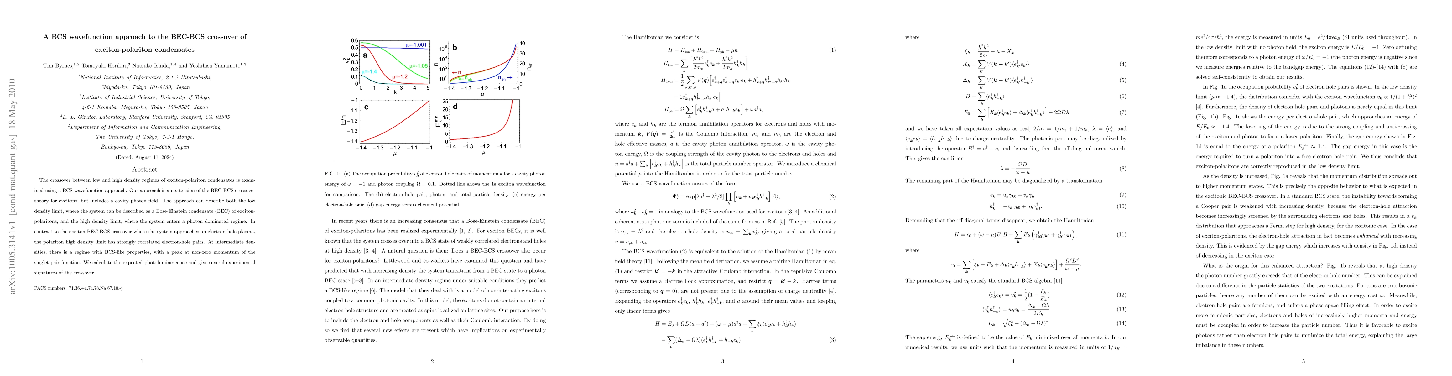 This research uses a BCS wavefunction approach to explore the BEC-BCS crossover in exciton-polariton condensates, extending the theory to include a cavity photon field. It reveals a regime with BCS-like properties at intermediate densities and predicts photoluminescence signatures for the crossover.