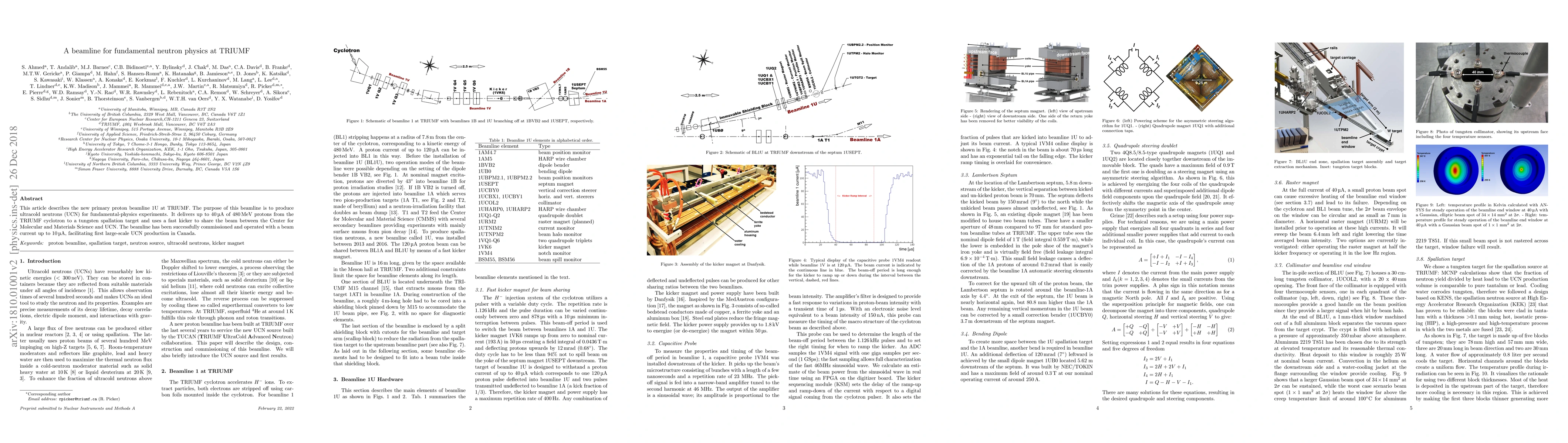 This paper details the new 1U proton beamline at TRIUMF designed to produce ultracold neutrons for fundamental physics experiments, successfully commissioning a beamline delivering up to 40 microA of 480 MeV protons, and enabling large-scale UCN production in Canada.