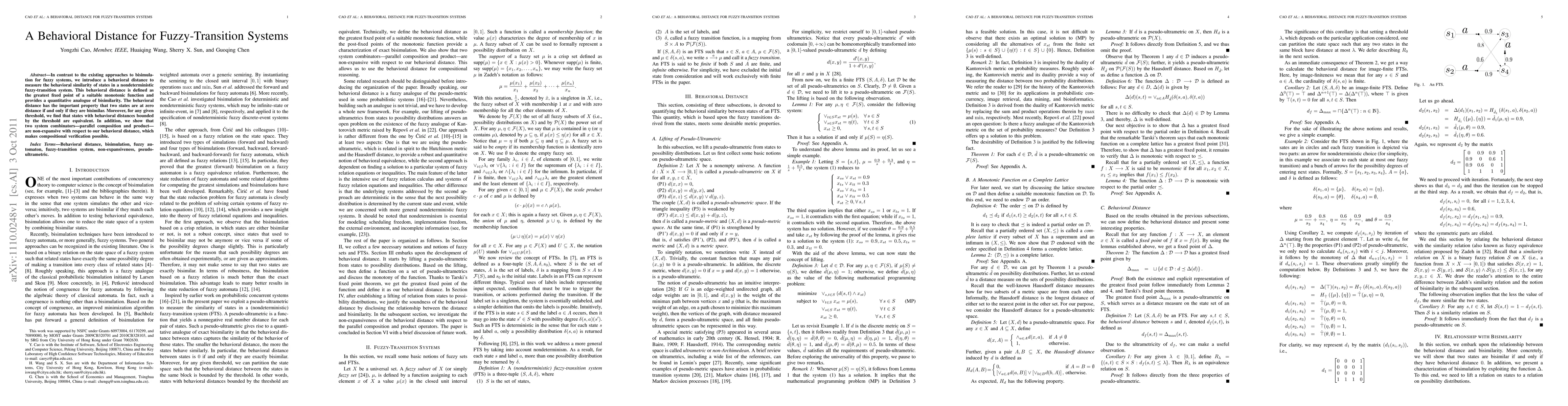 A new behavioral distance measures similarity in states of nondeterministic fuzzy-transition systems, providing a quantitative analogue of bisimilarity and enabling compositional verification through non-expansive system combinators.