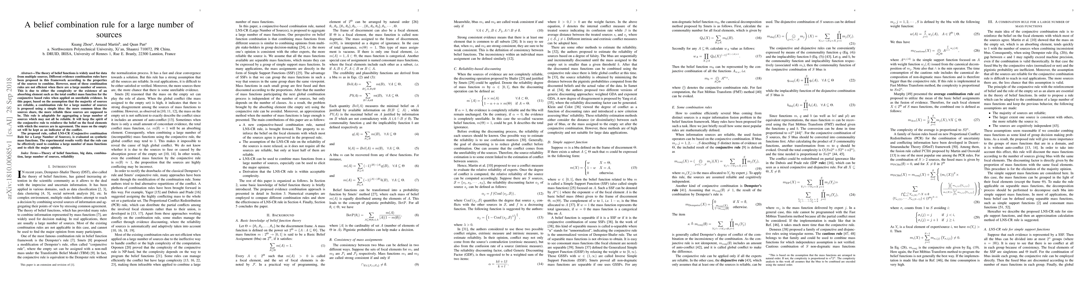 The theory of belief functions is widely used for data from multiple sources. Different evidence combination rules have been proposed in this framework according to the properties of the sources to combine. However, most of these combination rules are not efficient when there are a large number of sources. This is due to either the complexity or the existence of an absorbing element such as the total conflict mass function for the conjunctive based rules when applied on unreliable evidence. In this paper, based on the assumption that the majority of sources are reliable, a combination rule for a large number of sources is proposed using a simple idea: the more common ideas the sources share, the more reliable these sources are supposed to be. This rule is adaptable for aggregating a large number of sources which may not all be reliable. It will keep the spirit of the conjunctive rule to reinforce the belief on the focal elements with which the sources are in agreement. The mass on the emptyset will be kept as an indicator of the conflict. The proposed rule, called LNS-CR (Conjunctive combinationRule for a Large Number of Sources), is evaluated on synthetic mass functions. The experimental results verify that the rule can be effectively used to combine a large number of mass functions and to elicit the major opinion.