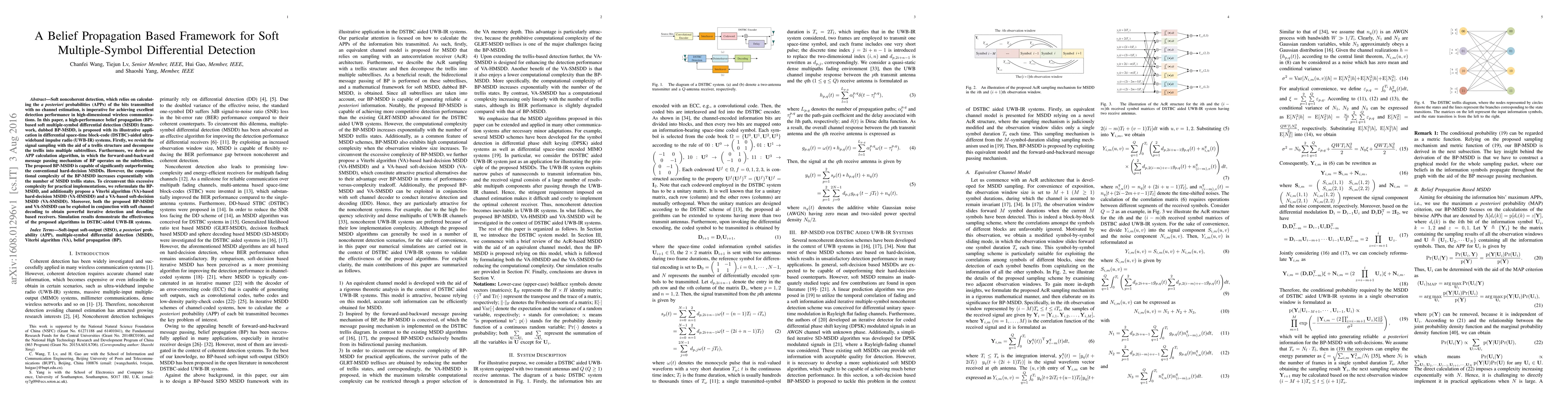 This paper proposes a belief propagation (BP)-based framework, BP-MSDD, for soft multiple-symbol differential detection in high-dimensional wireless communications, notably outperforming conventional hard-decision methods. To address computational complexity, it reformulates BP-MSDD and introduces Viterbi algorithm-based alternatives, VA-HMSDD and VA-SMSDD, enhancing practical implementation. Simulation results show significant performance gains in differential space-time block-code-aided ultra-wideband impulse radio systems.