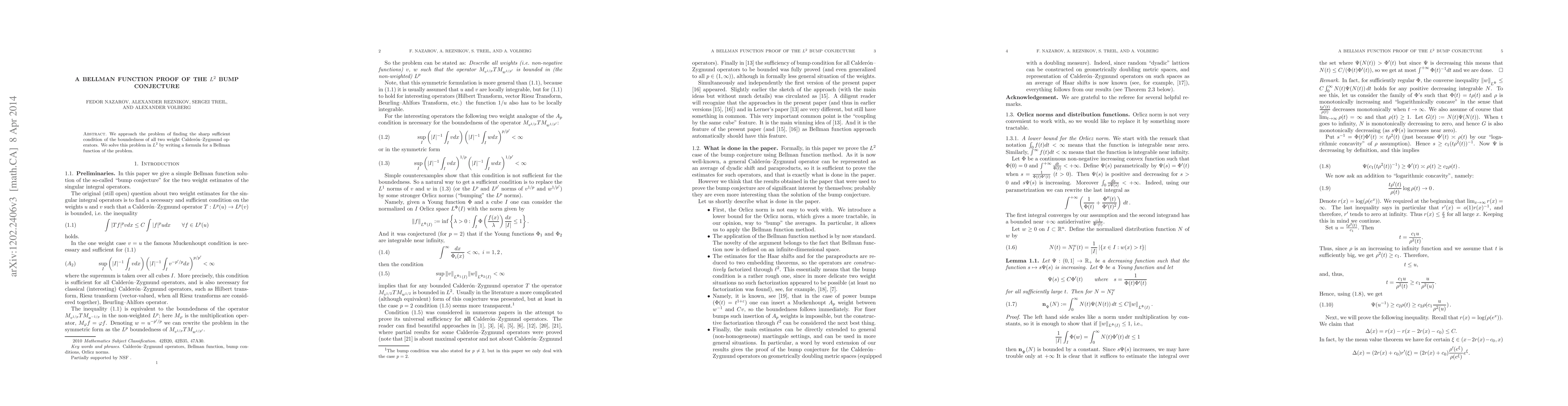 We approach the problem of finding the sharp sufficient condition of the boundedness of all two weight Calderon--Zygmund operators. We solve this problem in $L^2$ by writing a formula for a Bellman function of the problem.