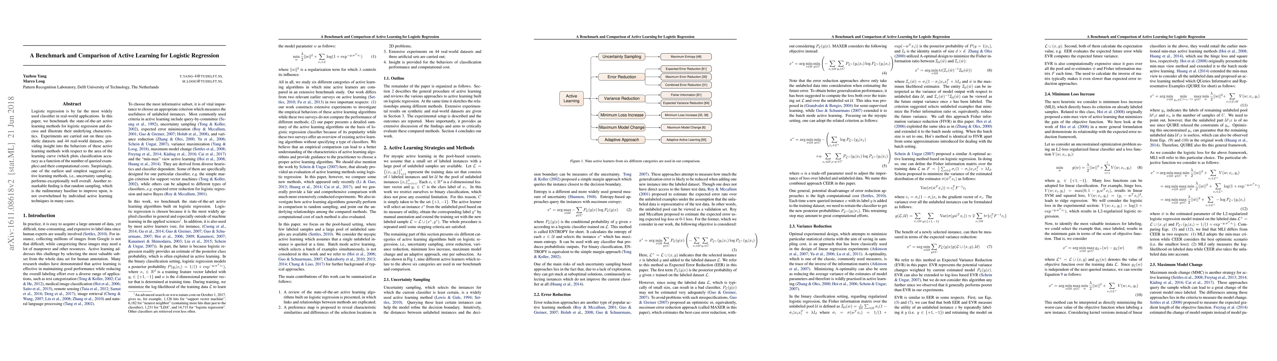 This paper benchmarks state-of-the-art active learning methods for logistic regression, revealing that simple uncertainty sampling often outperforms more complex techniques. Experiments on synthetic and real-world datasets show that even basic random sampling can compete with advanced active learning strategies in many scenarios.