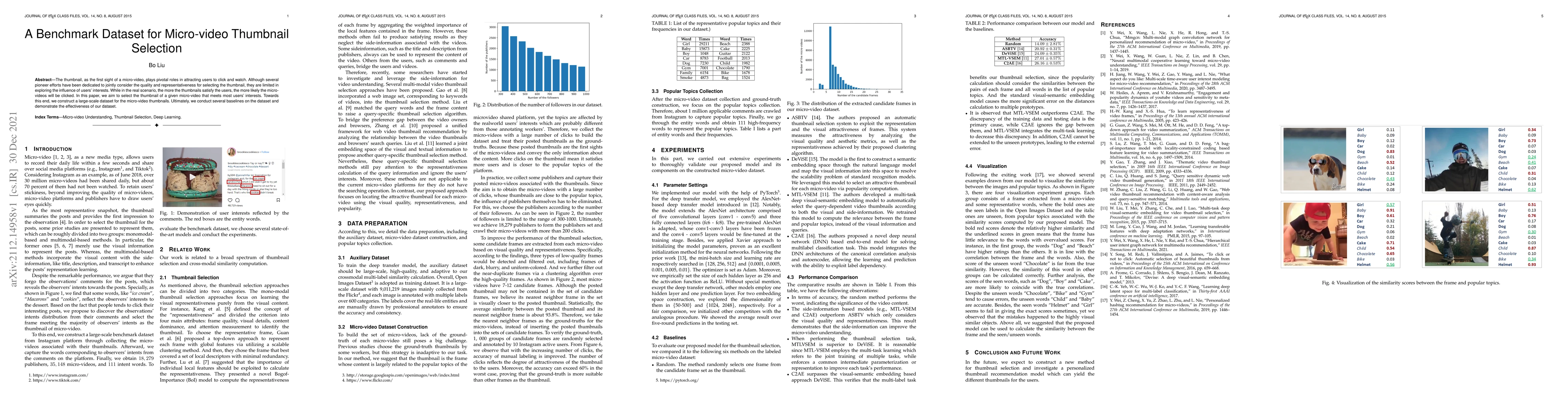 This paper constructs a large-scale dataset for micro-video thumbnails to address the challenge of selecting thumbnails that satisfy users' interests, aiming to improve click-through rates. The study demonstrates the effectiveness of the dataset through baseline experiments.
