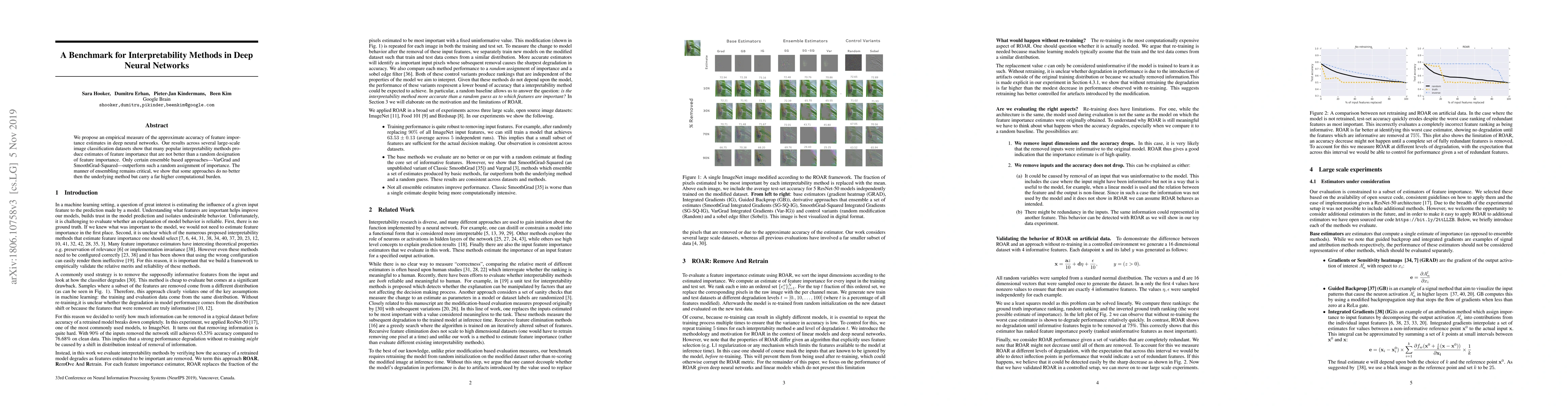 We propose an empirical measure of the approximate accuracy of feature importance estimates in deep neural networks. Our results across several large-scale image classification datasets show that many popular interpretability methods produce estimates of feature importance that are not better than a random designation of feature importance. Only certain ensemble based approaches---VarGrad and SmoothGrad-Squared---outperform such a random assignment of importance. The manner of ensembling remains critical, we show that some approaches do no better then the underlying method but carry a far higher computational burden.