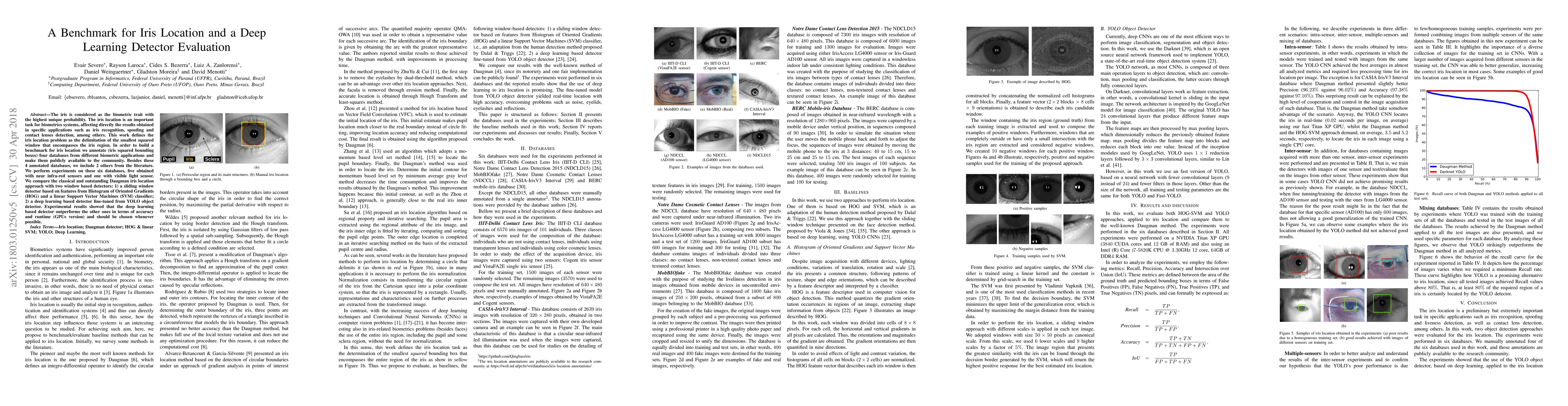The iris is considered as the biometric trait with the highest unique probability. The iris location is an important task for biometrics systems, affecting directly the results obtained in specific applications such as iris recognition, spoofing and contact lenses detection, among others. This work defines the iris location problem as the delimitation of the smallest squared window that encompasses the iris region. In order to build a benchmark for iris location we annotate (iris squared bounding boxes) four databases from different biometric applications and make them publicly available to the community. Besides these 4 annotated databases, we include 2 others from the literature. We perform experiments on these six databases, five obtained with near infra-red sensors and one with visible light sensor. We compare the classical and outstanding Daugman iris location approach with two window based detectors: 1) a sliding window detector based on features from Histogram of Oriented Gradients (HOG) and a linear Support Vector Machines (SVM) classifier; 2) a deep learning based detector fine-tuned from YOLO object detector. Experimental results showed that the deep learning based detector outperforms the other ones in terms of accuracy and runtime (GPUs version) and should be chosen whenever possible.