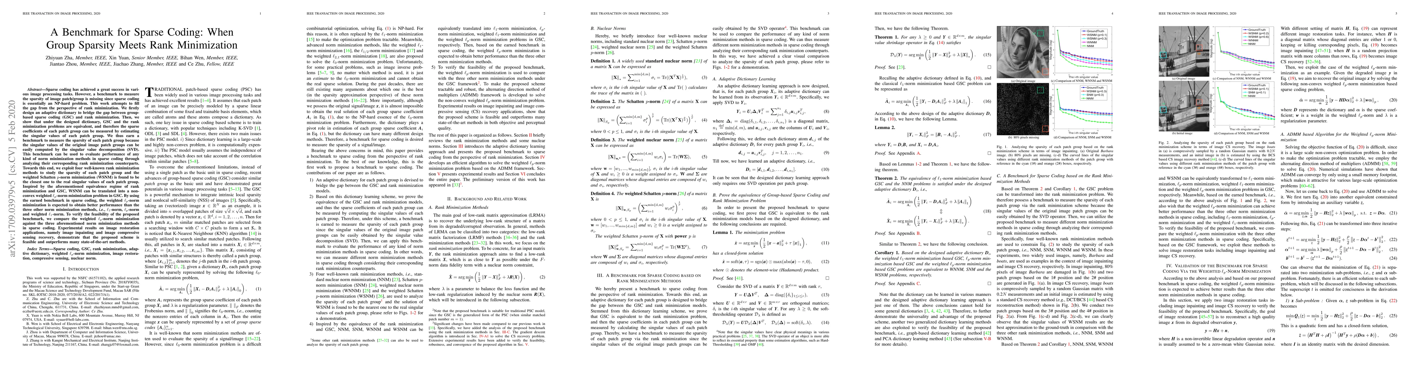 Sparse coding has achieved a great success in various image processing tasks. However, a benchmark to measure the sparsity of image patch/group is missing since sparse coding is essentially an NP-hard problem. This work attempts to fill the gap from the perspective of rank minimization. More details please see the manuscript....