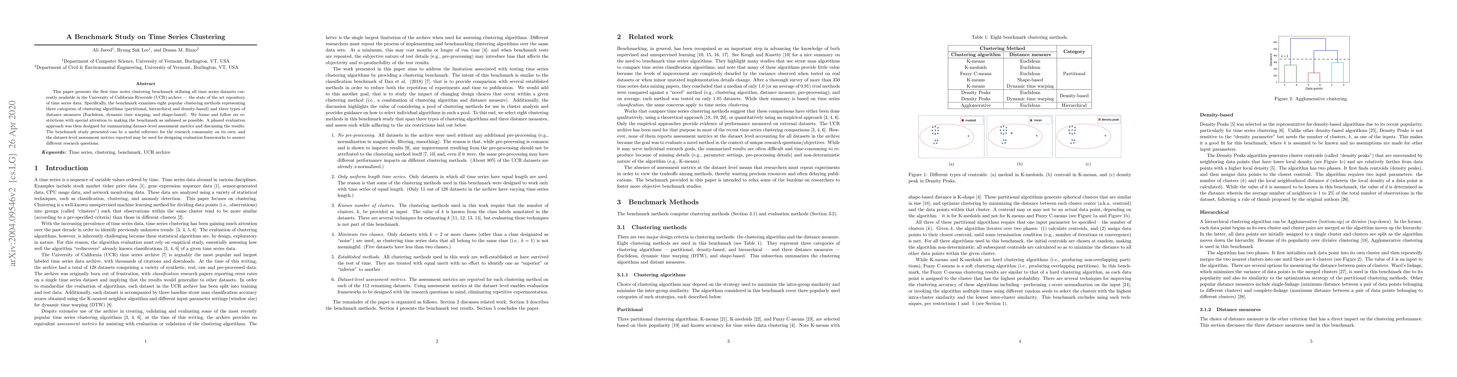 This paper establishes a comprehensive time series clustering benchmark using all datasets from the UCR archive, evaluating eight clustering methods across three categories and three distance measures. The study aims to provide unbiased dataset-level assessment metrics for future research and evaluation frameworks.