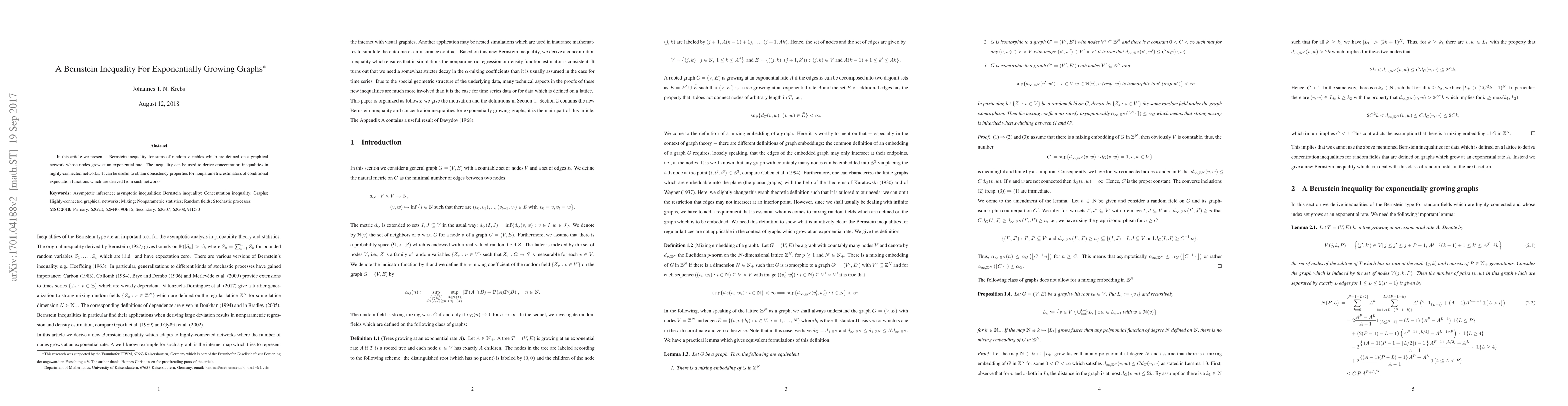 This research introduces a Bernstein inequality for exponential node growth in graphical networks, enabling concentration inequality derivations in highly connected systems. It's beneficial for establishing consistency in nonparametric estimators of conditional expectation functions based on these networks.