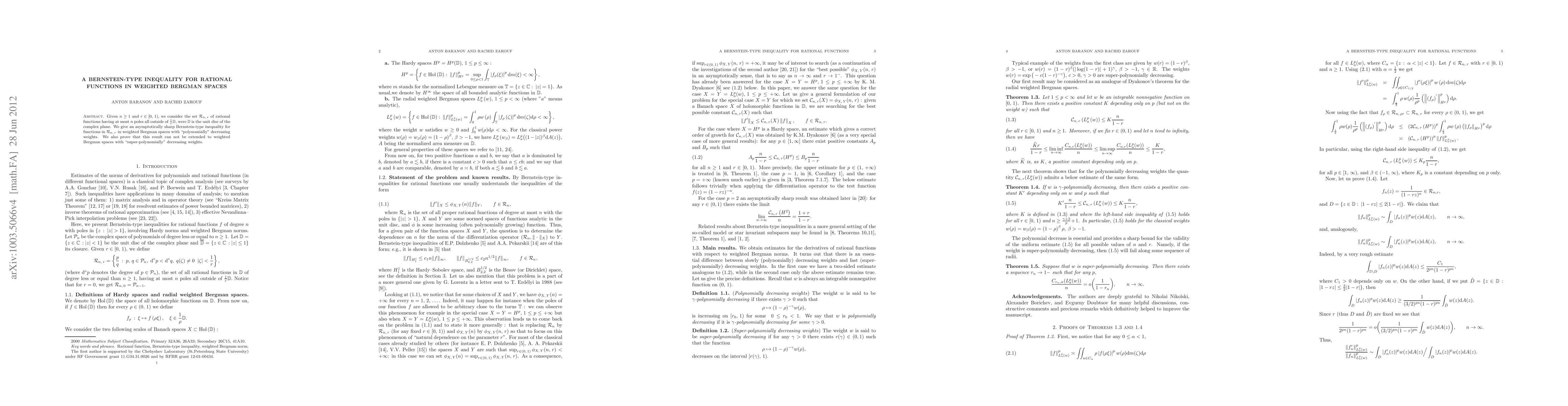 This paper establishes an asymptotically sharp Bernstein-type inequality for rational functions with a limited number of poles in weighted Bergman spaces, showing that the result holds for polynomially decreasing weights but not for super-polynomially decreasing weights as the number of poles increases and the weight parameter approaches 1.