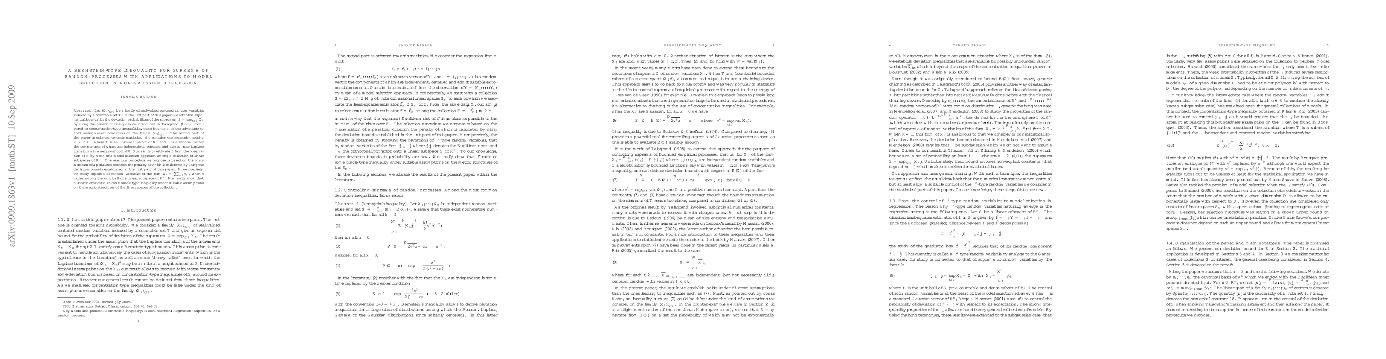 This paper establishes exponential bounds for the deviation probabilities of the supremum of random processes, with applications to model selection in non-Gaussian regression, leading to an oracle-type inequality for estimating an unknown vector.
