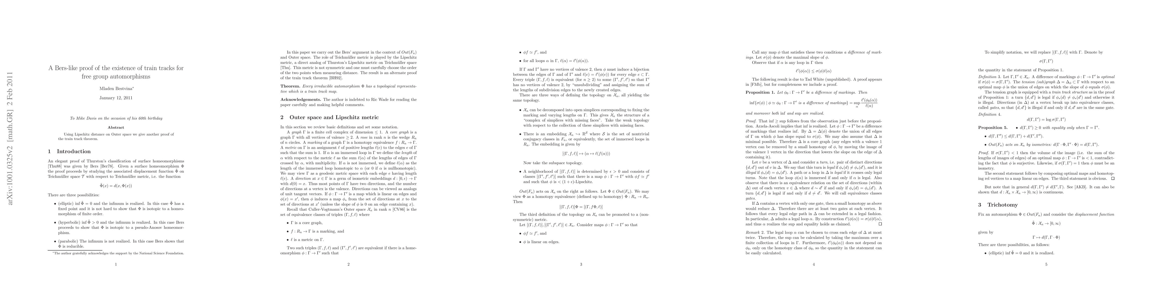Using Lipschitz distance on Outer space we give another proof of the train track theorem.