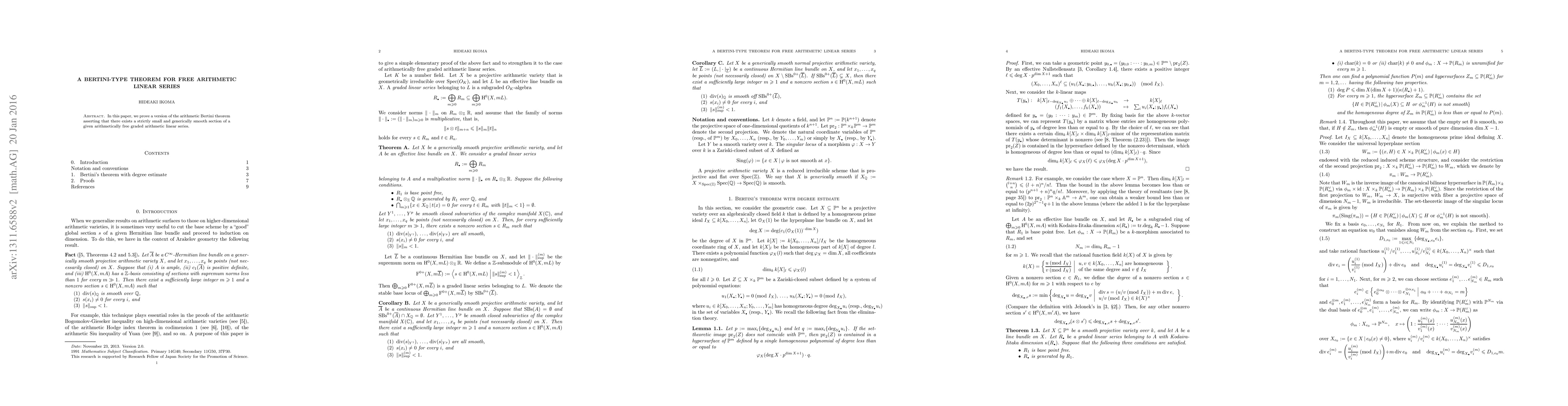 This paper proves a variant of the Bertini theorem for arithmetic linear series, demonstrating the existence of a generically smooth and strictly small section within a given arithmetically free graded series.