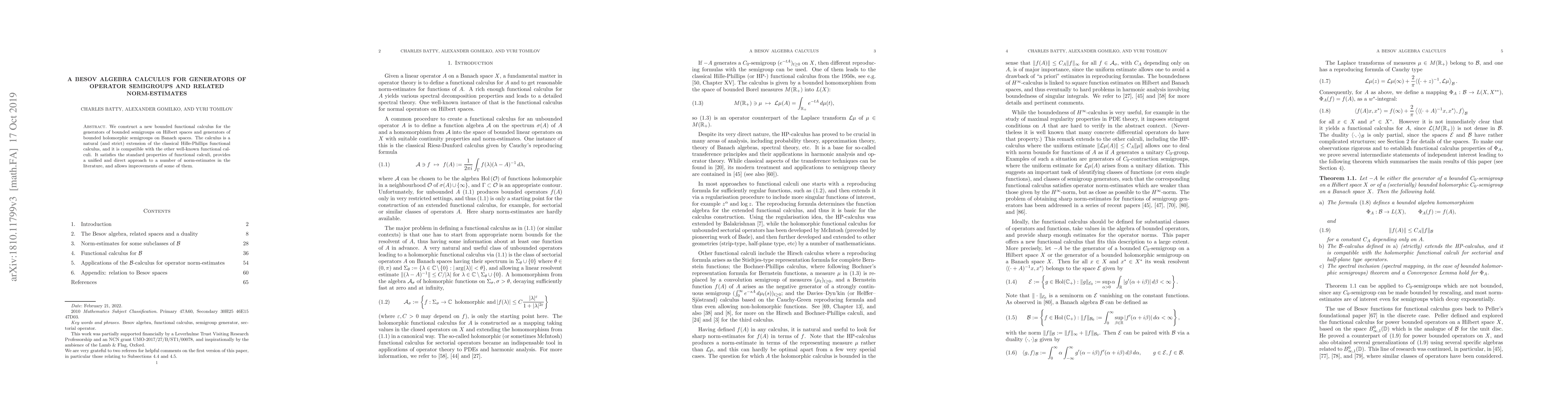 Summary: This paper introduces a new Besov algebra calculus for generators of operator semigroups, extending the Hille-Phillips functional calculus and offering a unified approach to norm-estimates, with potential for improving existing results.