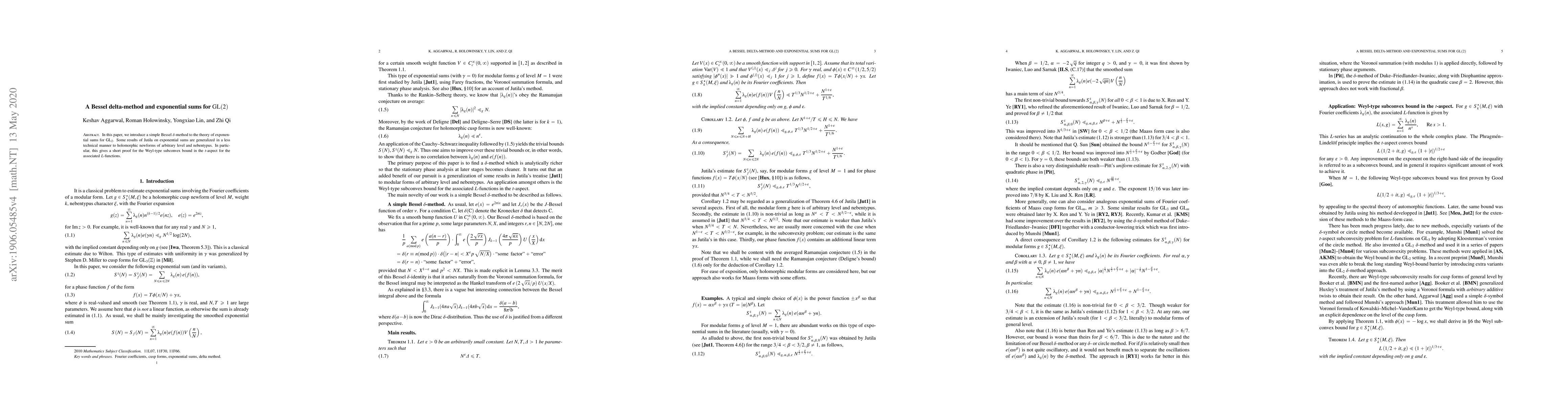 Researchers introduce a simplified Bessel method for analyzing exponential sums in GL(2) matrices, generalizing earlier results on holomorphic newforms of arbitrary level and nebentypus, leading to improved bounds for L-functions.