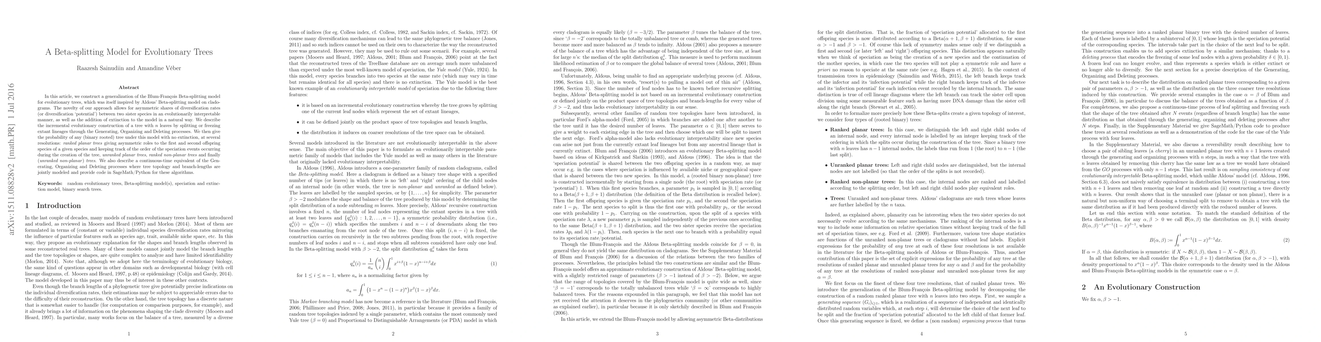 This paper generalizes the Beta-splitting model for evolutionary trees, allowing asymmetric diversification rates and incorporating extinction. It presents algorithms for constructing trees through splitting, organizing, and deleting processes, providing probabilities for various tree types and offering continuous-time modeling with code in SageMath/python.