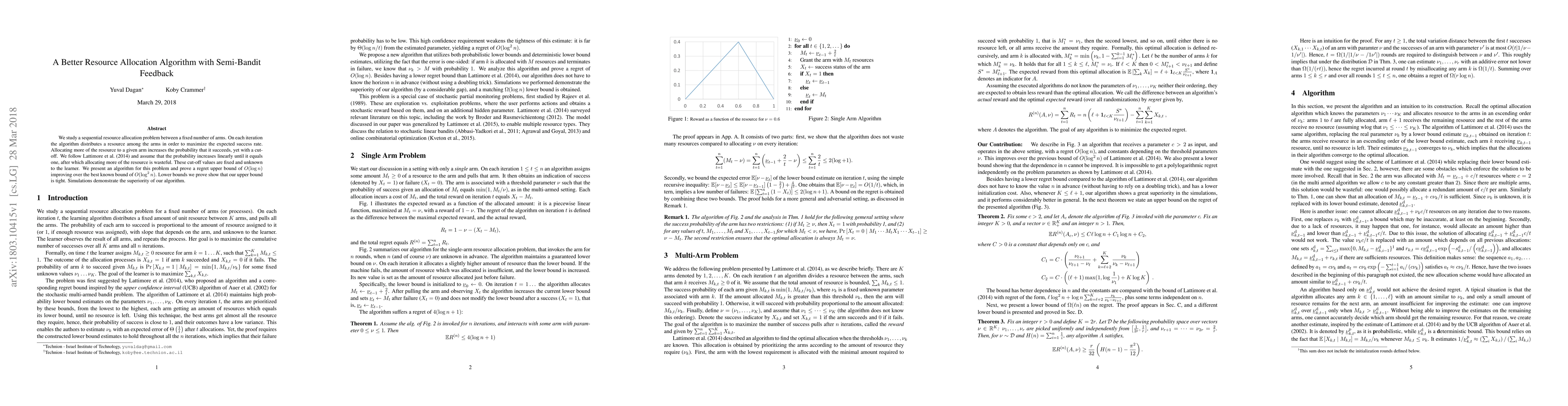 Researchers develop a new algorithm for resource allocation that improves upon previous bounds, achieving an $O( ext{log } n)$ regret upper bound, outperforming existing algorithms in simulations.