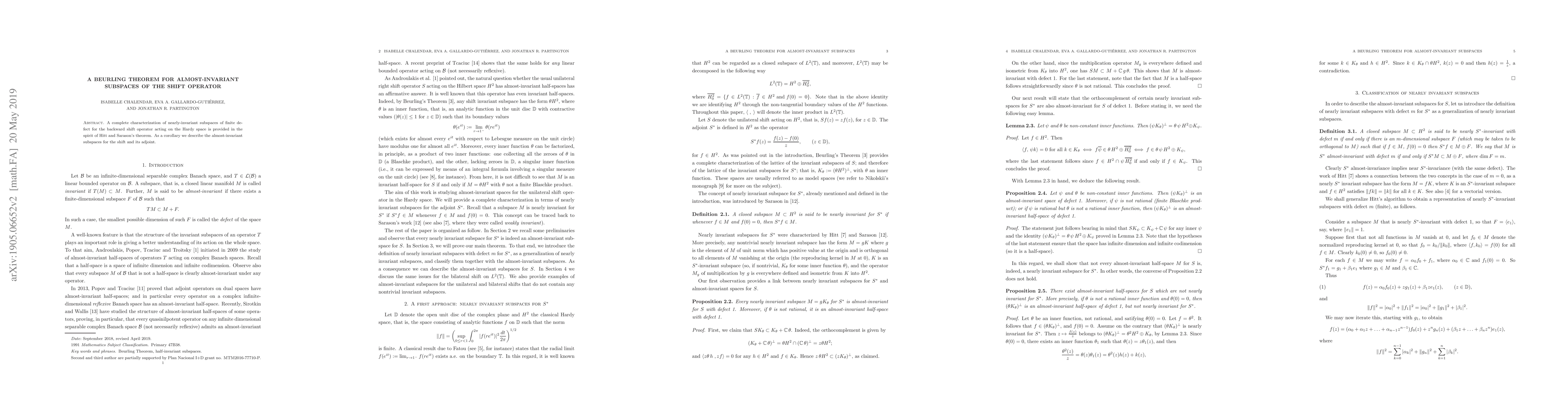 This paper characterizes nearly-invariant subspaces of finite defect for the backward shift operator on the Hardy space, extending Hitt and Sarason's theorem, and provides a description of almost-invariant subspaces for both the shift and its adjoint.