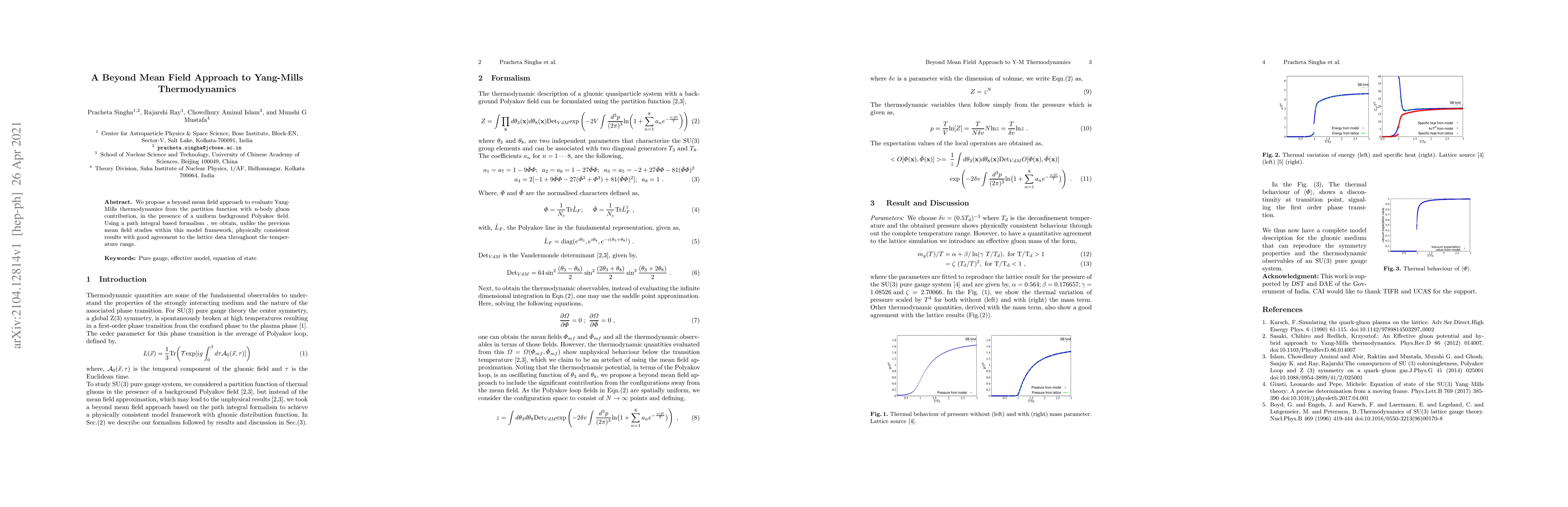 This paper introduces a beyond mean field approach to Yang-Mills thermodynamics, evaluating the partition function with n-body gluon contributions in a uniform background Polyakov field. The path integral formalism yields results consistent with lattice data across the temperature range, surpassing previous mean field studies.