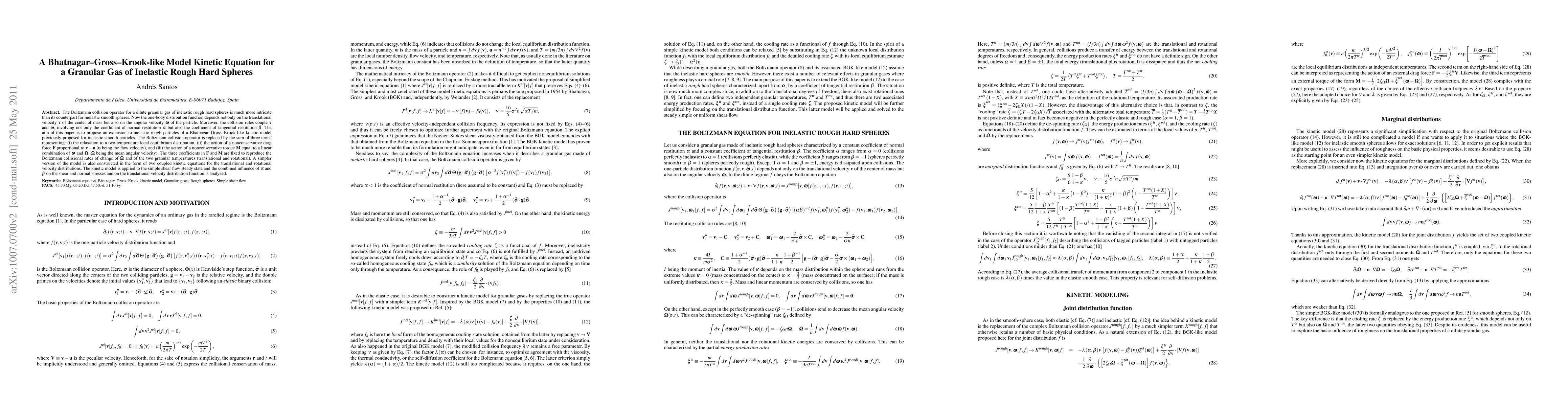 This paper proposes a Bhatnagar-Gross-Krook-like kinetic model for inelastic rough hard sphere granular gas, extending previous models for smooth particles. The model incorporates relaxation to a two-temperature equilibrium, a nonconservative drag force, and a nonconservative torque to account for angular velocity effects, and is applied to analyze shear flow steady states.