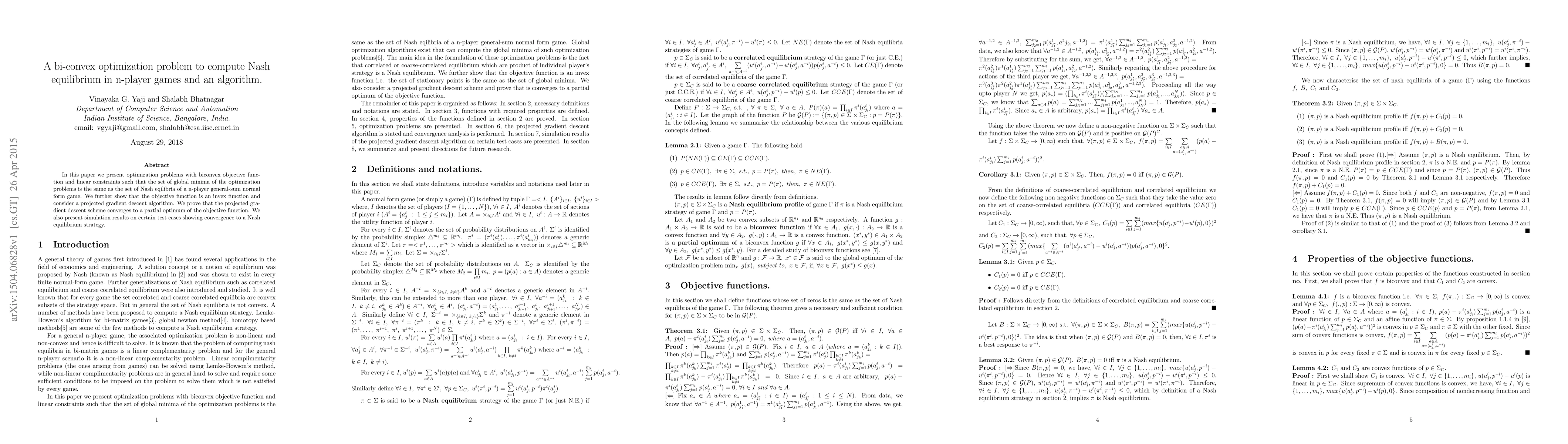 Researchers developed a new optimization method to find Nash equilibrium in multi-player games, using bi-convex objective functions and a projected gradient descent algorithm that converges to partial optima.