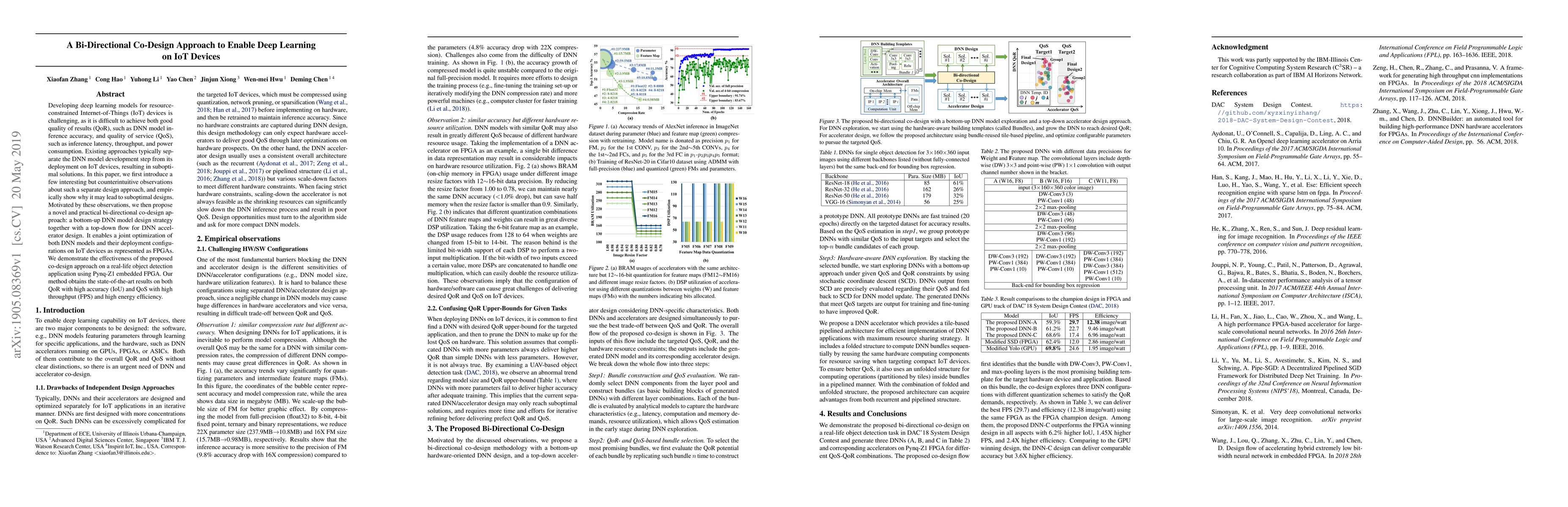 This paper proposes a bi-directional co-design approach to optimize deep learning models for resource-constrained IoT devices, achieving high inference accuracy and efficient performance. The method integrates model design and accelerator development, demonstrating superior results in accuracy, throughput, and energy efficiency on an object detection application.