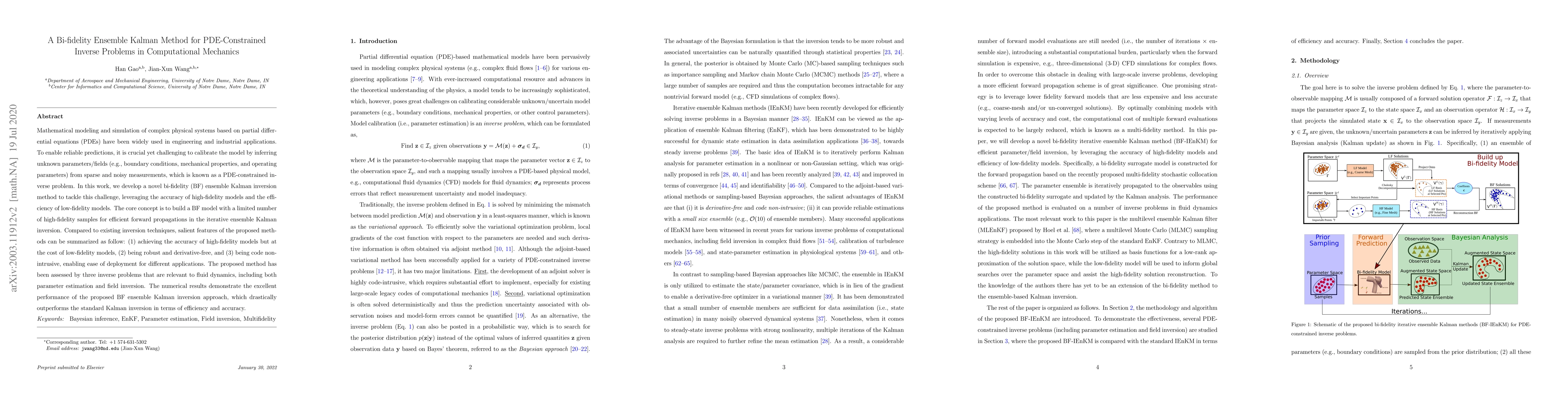 This paper introduces a bi-fidelity ensemble Kalman inversion method for solving PDE-constrained inverse problems, combining high-fidelity and low-fidelity models to enhance accuracy and efficiency. The method is robust, derivative-free, and code non-intrusive, demonstrating superior performance over standard Kalman inversion in fluid dynamics applications.